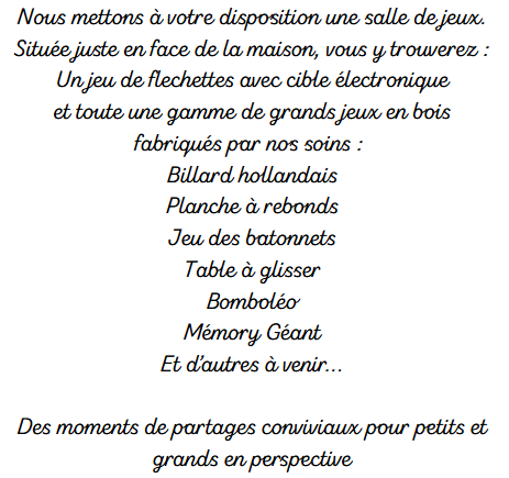Au Domaine de l'Epine Noire, nous nous efforçons de vous garantir le meilleur confort dès vos premiers instants de vacances : vos lits sont faits pour votre arrivée, le linge de toilette de chacun est délicatement disposé dans vos chambres, votre gîte vous attend propre et rangé, le ménage sera fait par nos soins après votre départ.